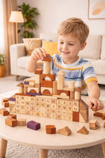Jeu éducatif en bois 3-en-1 (Alphabet + Chiffres + Construction)